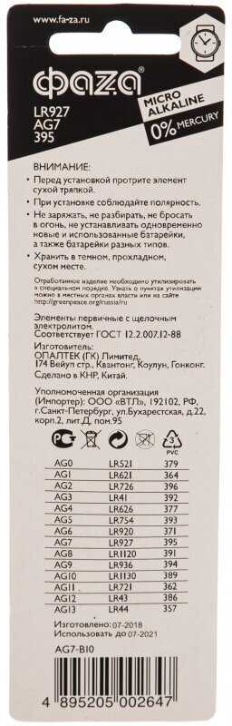 Отзывы о Марганцево-цинковые часовые элементы питания ФАZА AG 7 LR 927 (5002647)