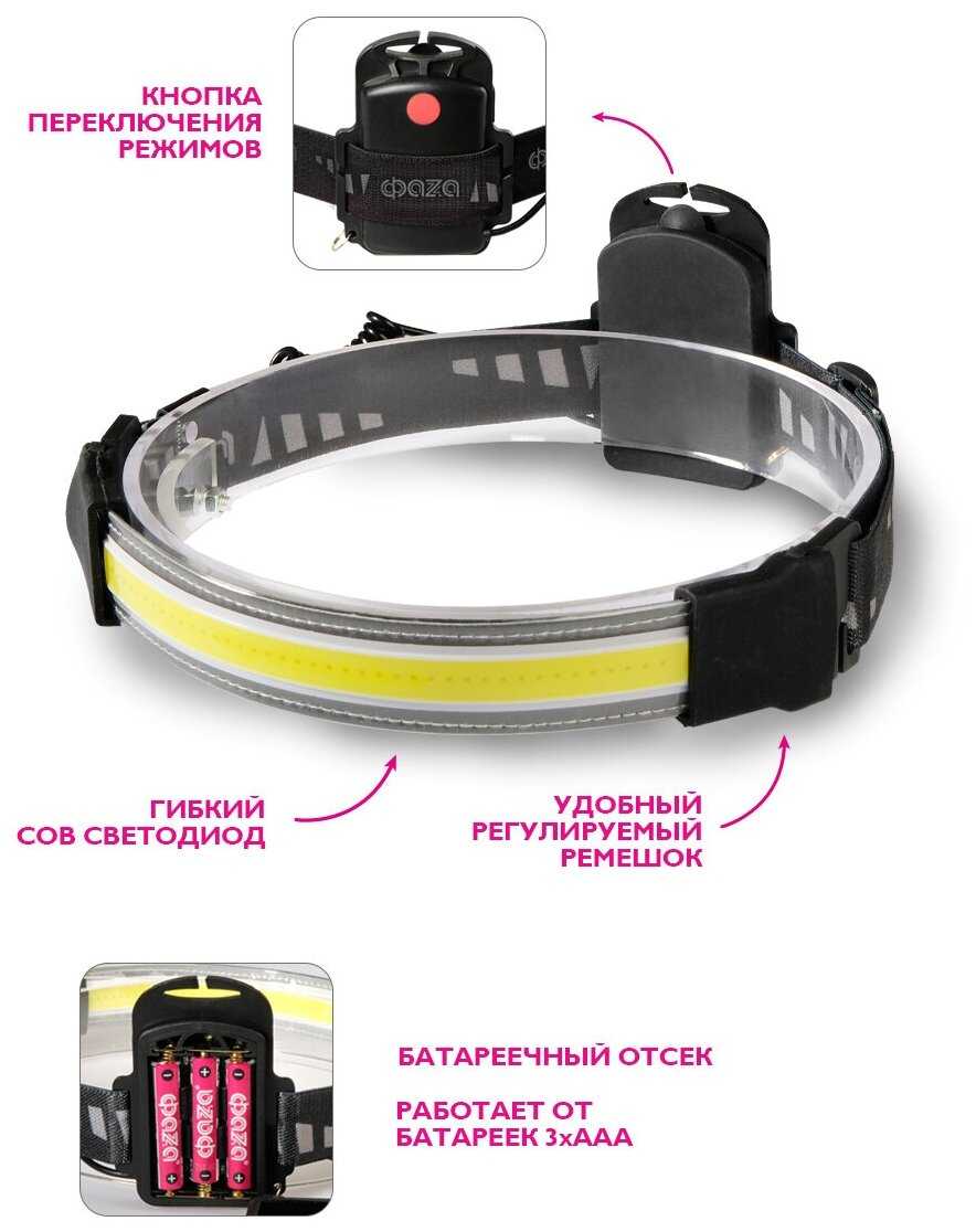 9 отзывов пользователей o ФАZA Фонарь налобный светодиодный ФAZA H5-L8W-FLEX