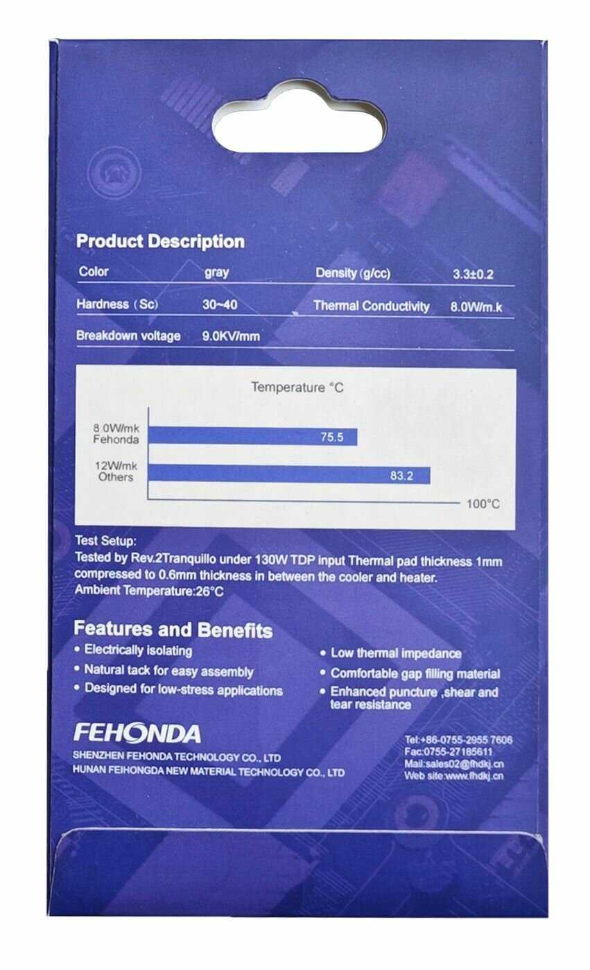 Характеристи FEHONDA Термопрокладка (8Вт/мК 3мм 85х45мм)