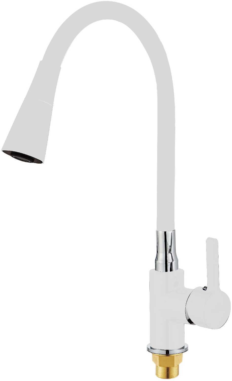 Отзывы о Смеситель для кухни PREMIUM однорычажный высокий гибкий излив, белый, латунь