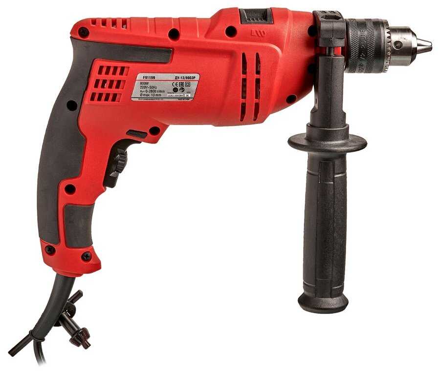 | Особенности конструкции : | блокировка кнопки включения, дополнительная рукоятка, ограничитель глубины сверления |