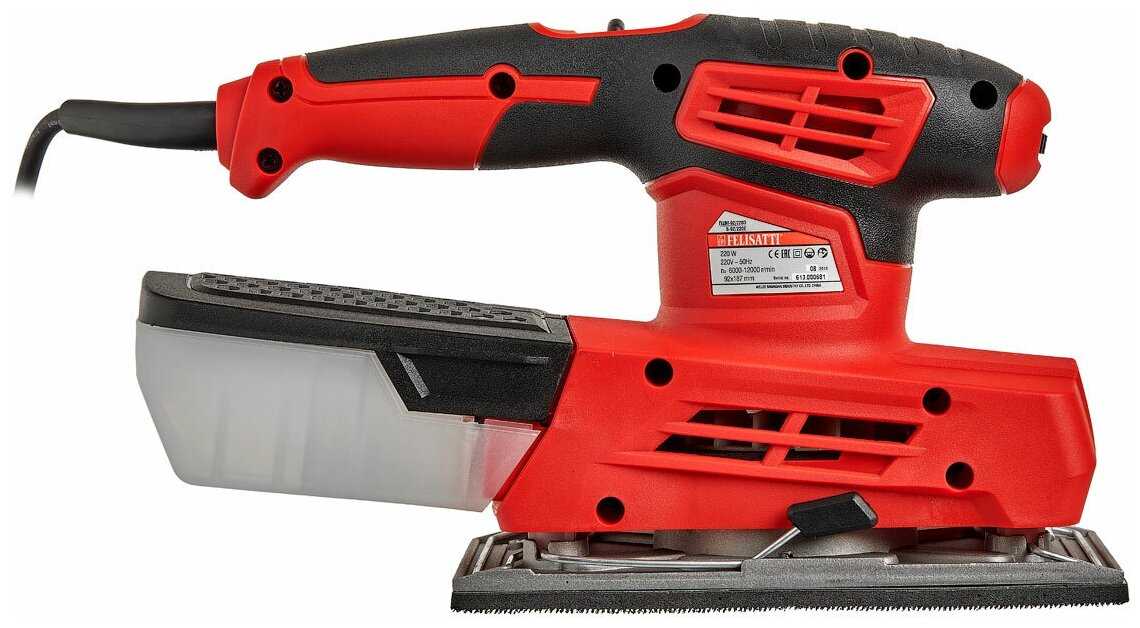- + Удобный хват, небольшая вибрация на максимуме, регулировка оборотов, два способа крепления наждачки (липучка или защёлка), длины шнура вполне хватает, ну и вид симпатичный :)