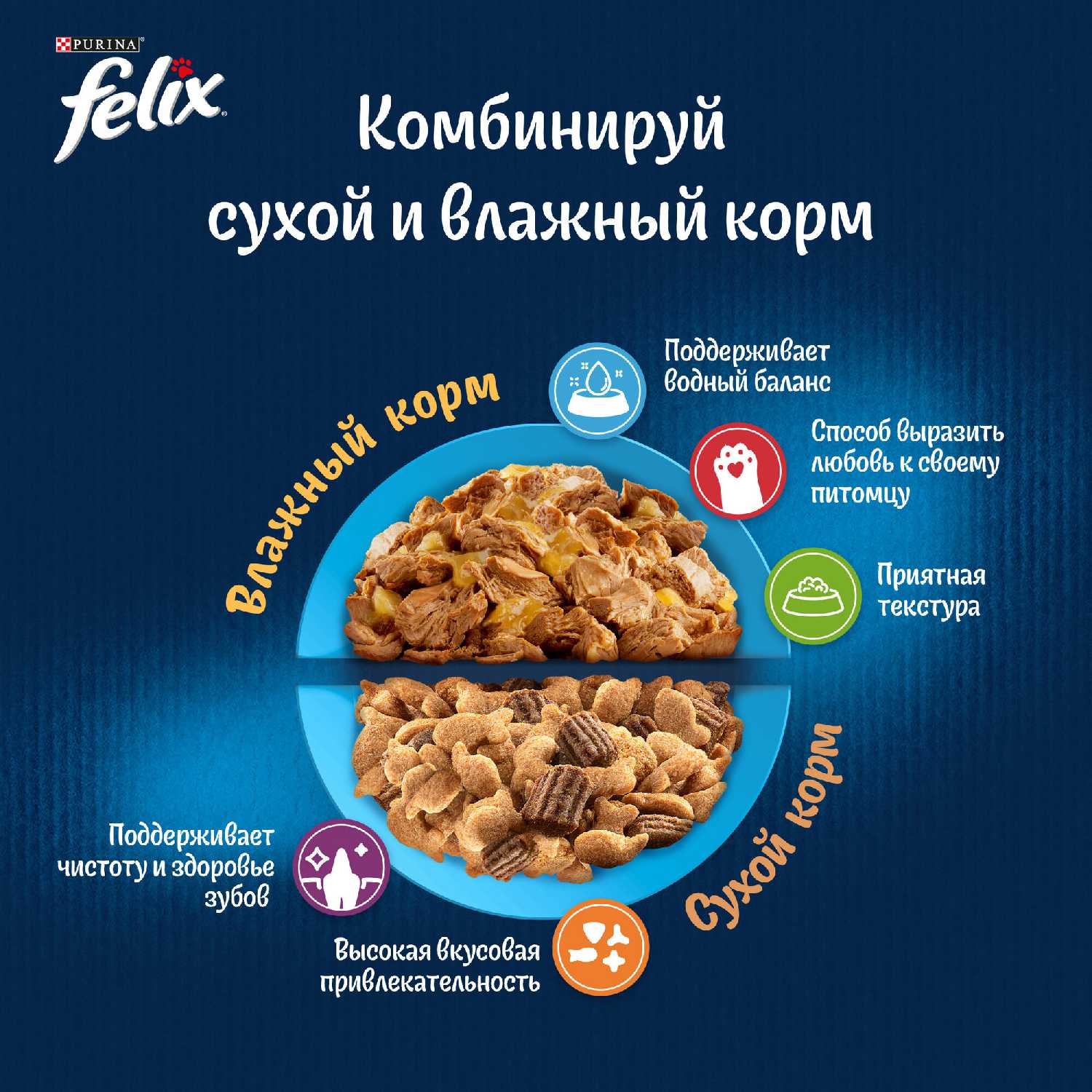 Да, пользователи успешно комбинируют его с сухими кормами (например, Purina One для стерилизованных кошек). Некоторые отмечают, что кошки отказываются от сухого корма без добавления Felix, что демонстрирует высокую привлекательность влажного продукта. Такой подход позволяет балансировать рацион.