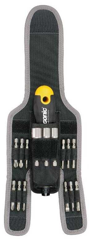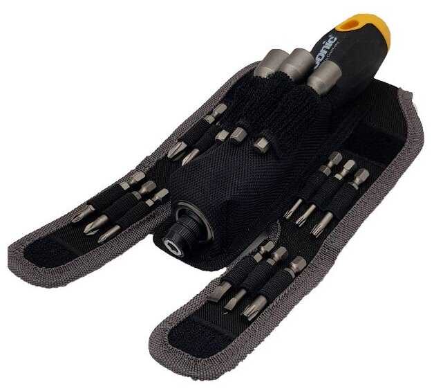 - + Felo Ergonic с набором бит в чехле хороший, удобный комплект в компактном исполнении. Удобная сумка. Ручка отвертки с возможностью силового закручивания.