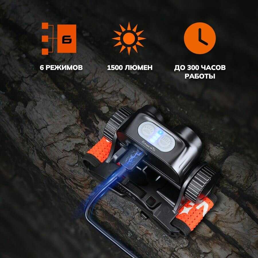 - Фонарь стабильно сидит на голове во время бега или движения, вес аккумулятора не ощущается.