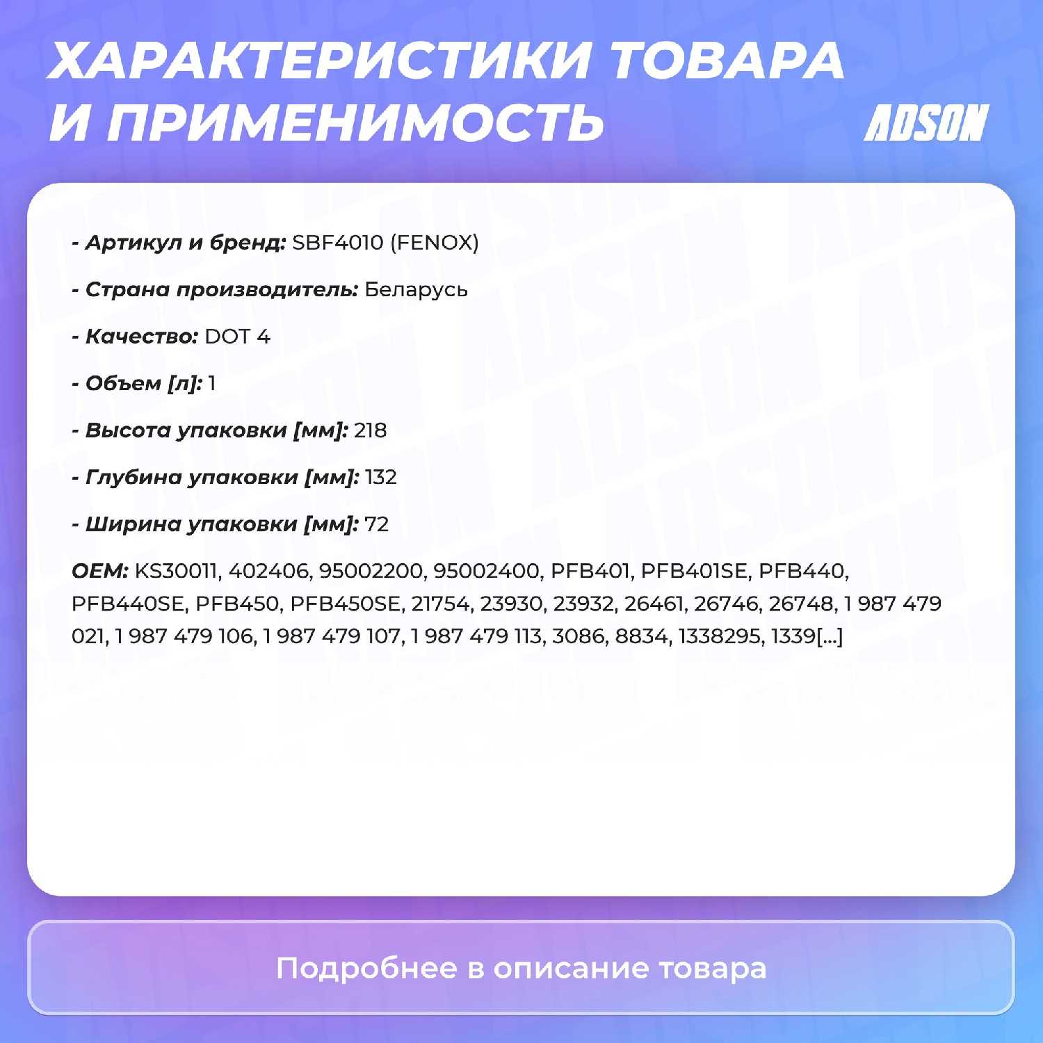 Характеристи Fenox Sbrake DOT 4 (SBF4010)