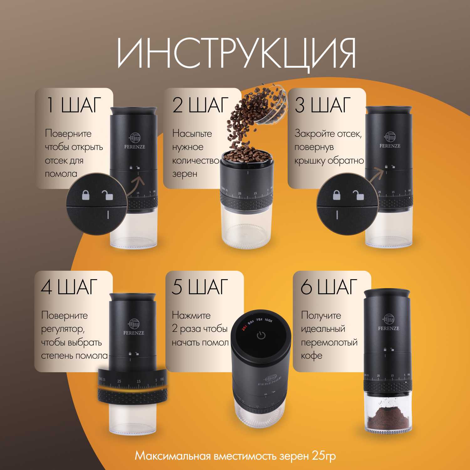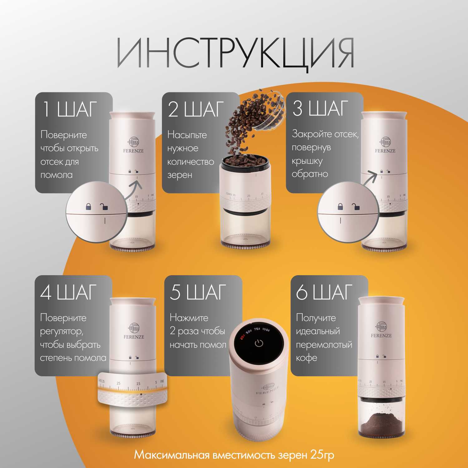 19 отзывов пользователей o FERENZE Кофемолка электрическая