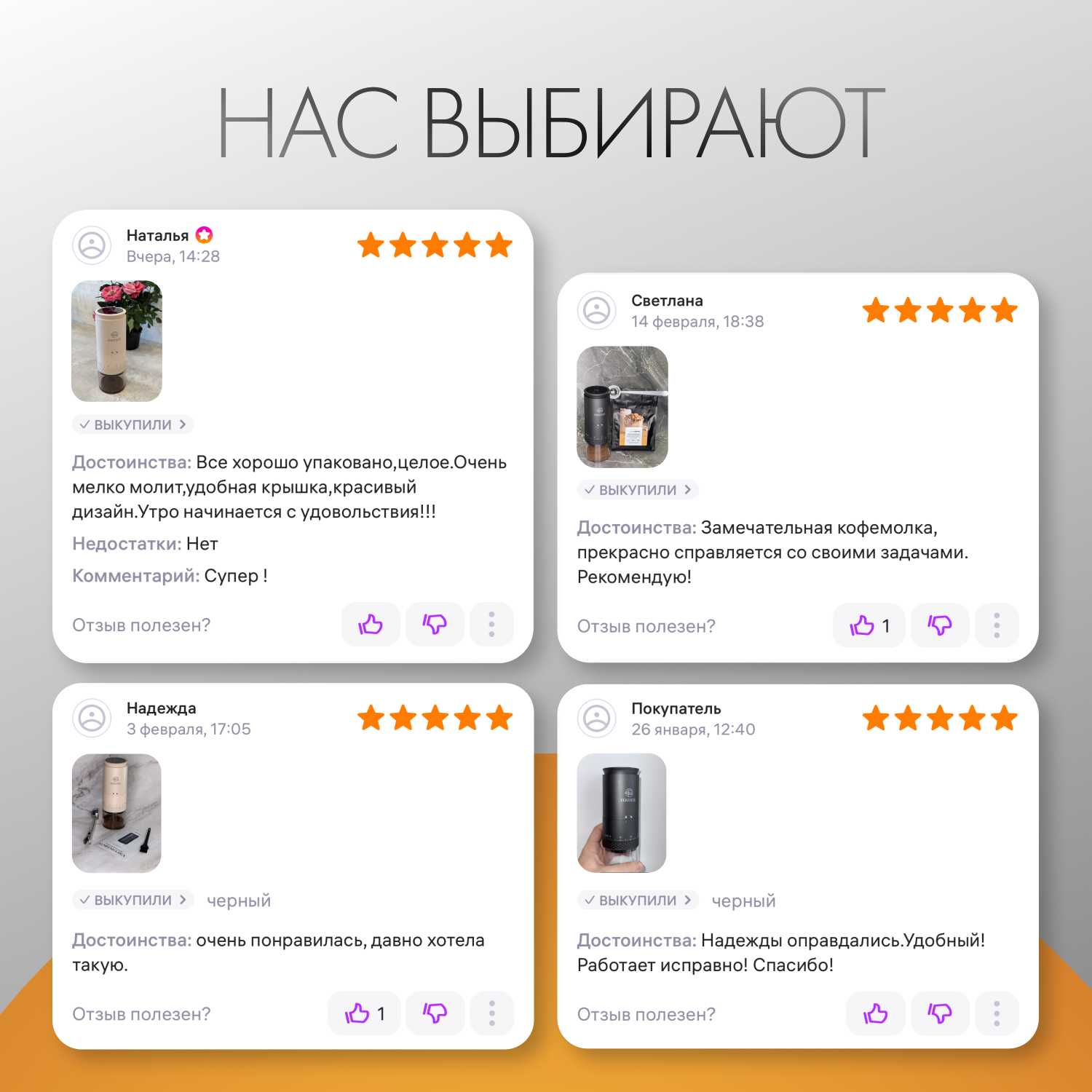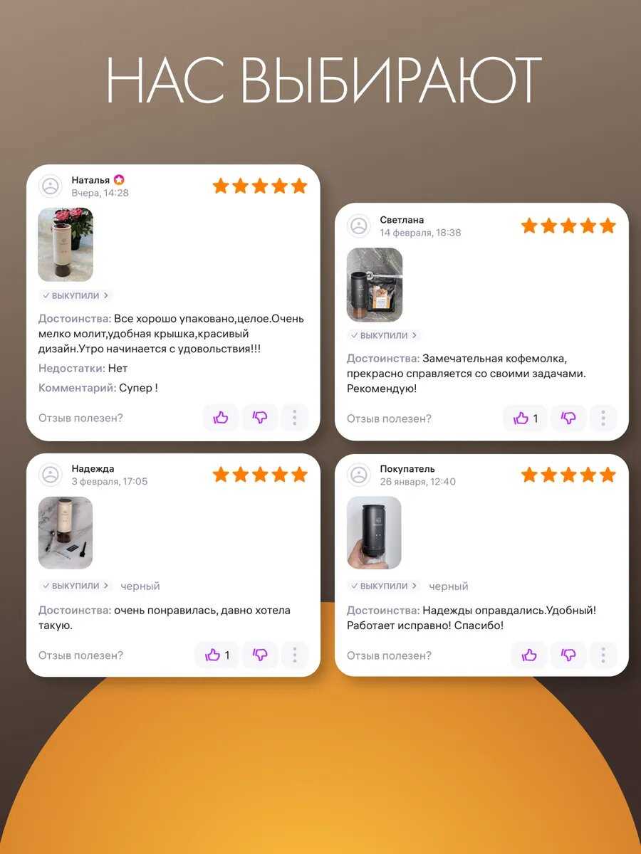 - + отличная кофемолка! тихая, разный помол можно выбрать!