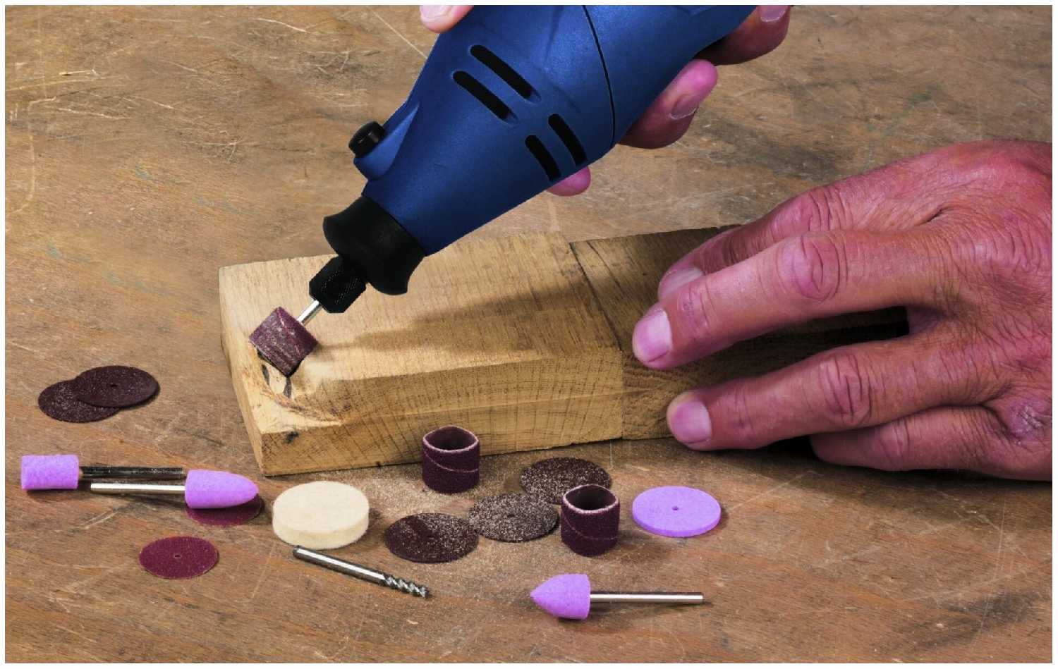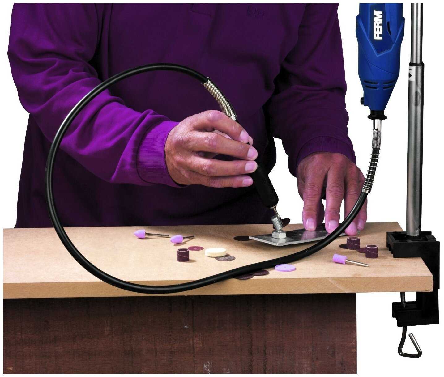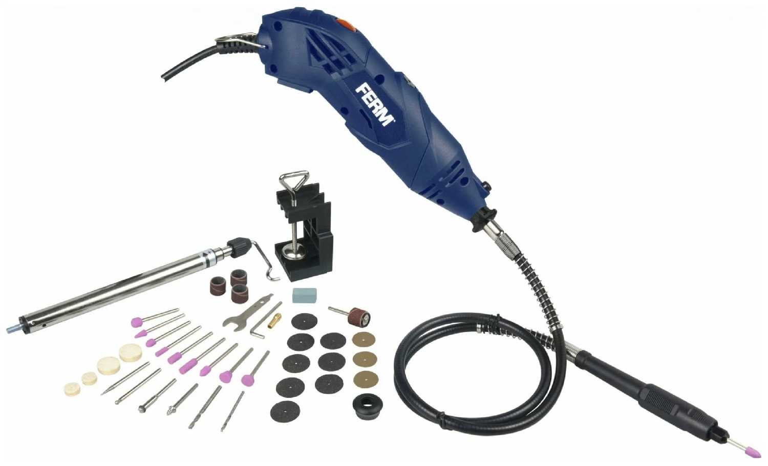 - + Качество изготовления, удобство пользования, наличие реверса, наличие достаточно большого комплекта насадок, гибкий вал, подвес для крепления к столу или к верстаку, удобный кейс для хранения и переноски.