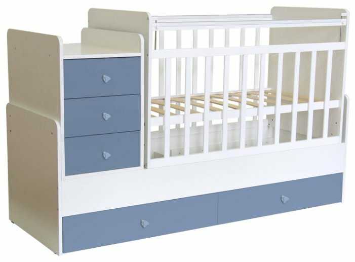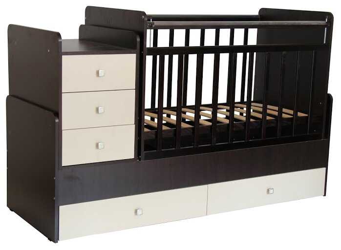 - пеленальный столик каркас из ДСП маятниковый механизм качания размеры 64x173x110 см размер матраса 60x170 см опускающаяся передняя стенка регулировка высоты дна защитные силиконовые накладки