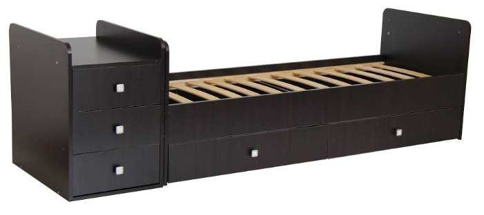 - + Классная. Смотрится красиво. Удобно, что кровать 2 в 1 и есть маленький пеленальный комод, который потом можно сделать прикроватной тумбочкой. При покупке еще была скидка, получилось выгодно.