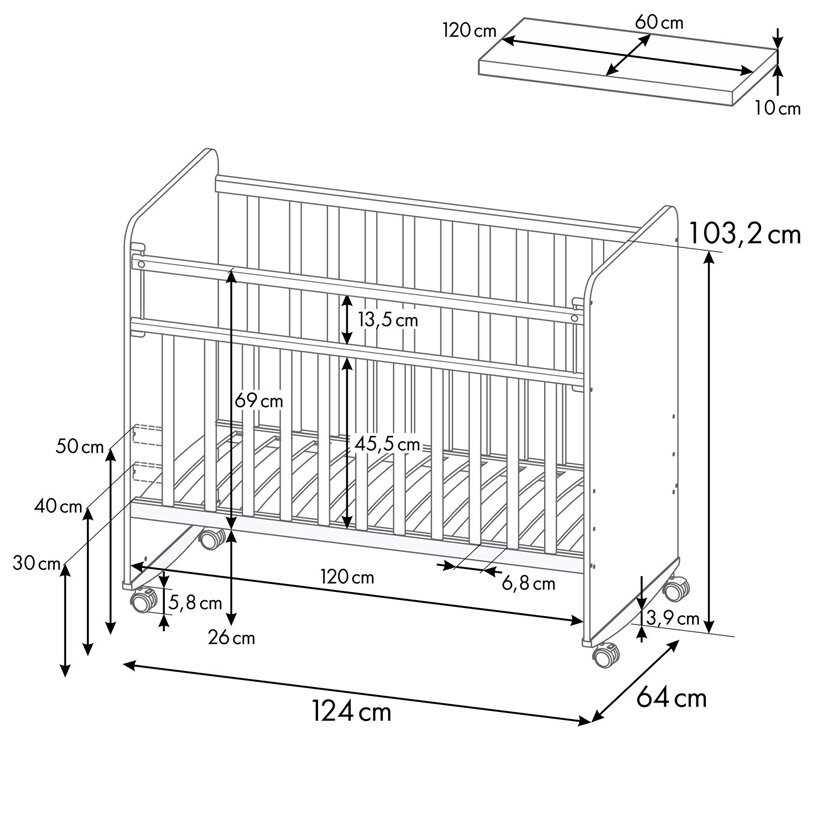 Особенности : | выдвижной ящик, колеса, опускающаяся боковина, съемная боковина |