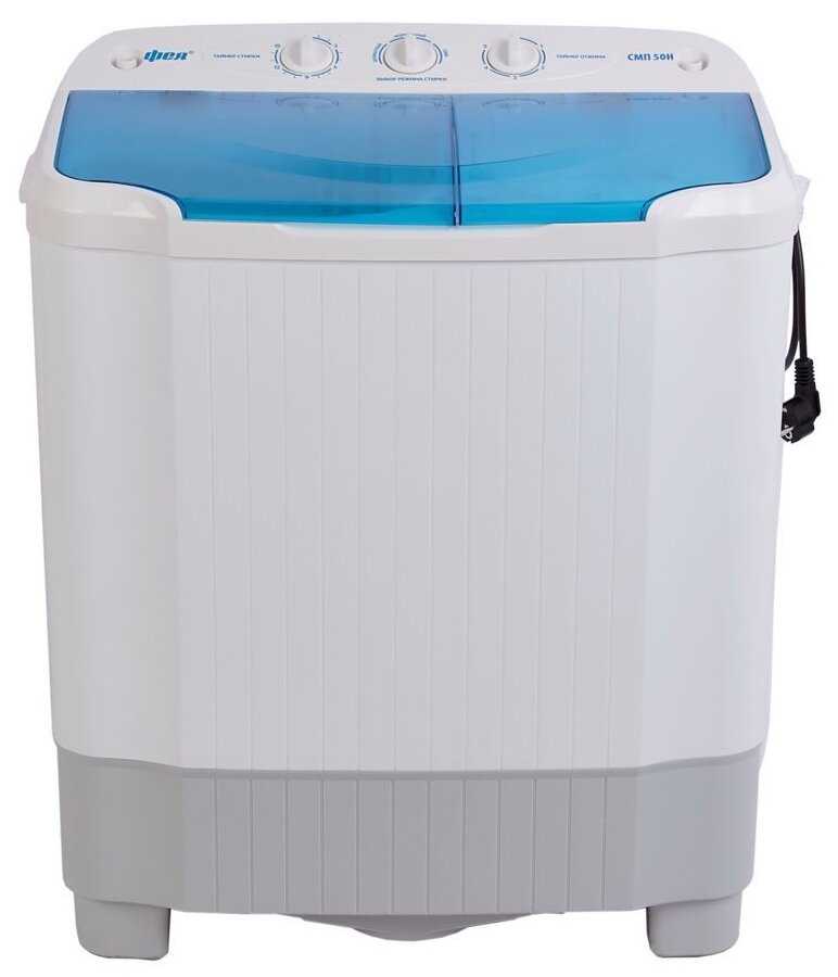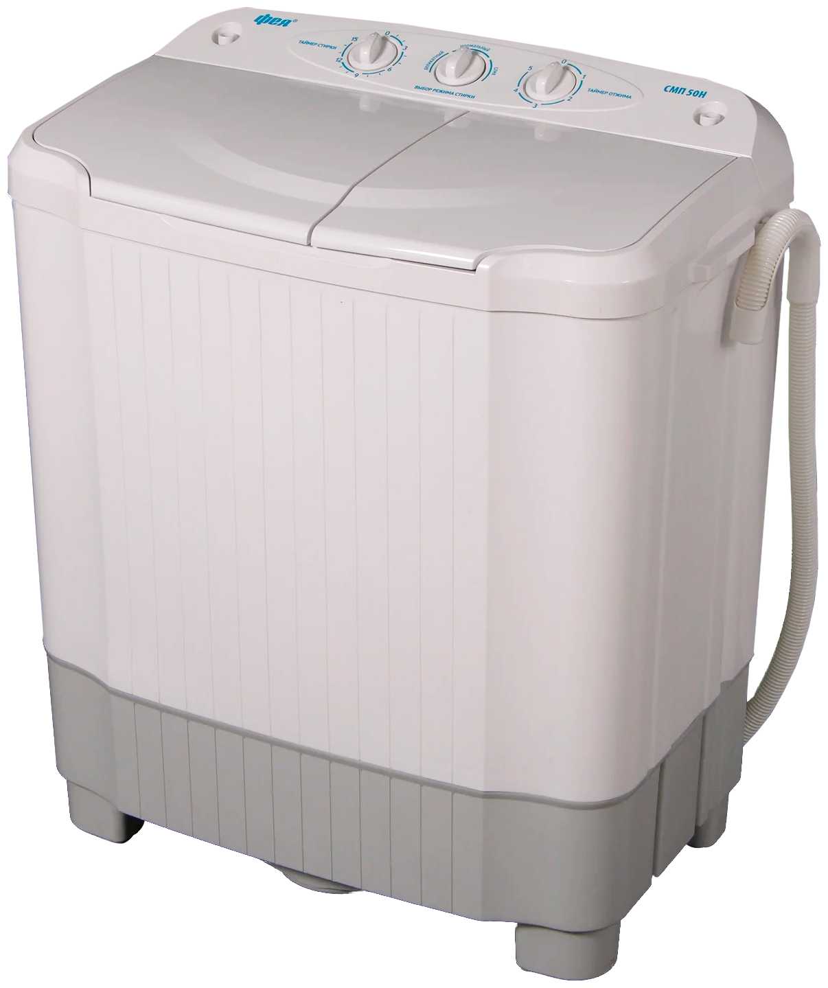 Подходит для домов без водоснабжения. Работает относительно тихо. Можно одновременно включать "стирку" и "отжим".
