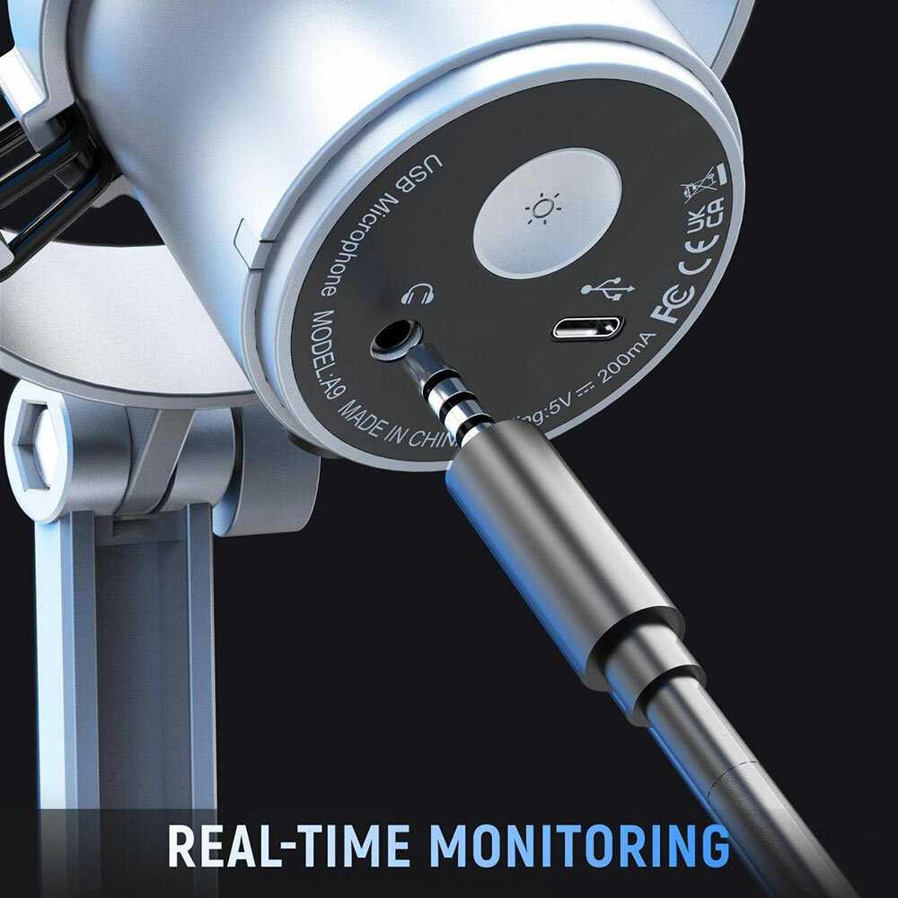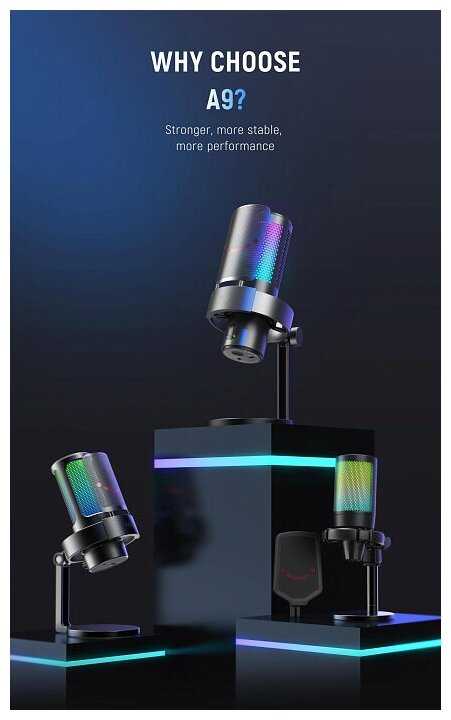 - + Микрофон выглядит очень красиво, можно менять подсветку. Также он полностью металлический в отличие от A8, A8 plus и его конкурента HyperX. Не нужно скачивать дополнительных программ, все собрано и работает прямо из коробки. Звук шикарный, за такую цену конкурентов нет.