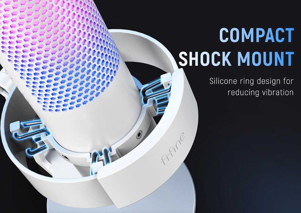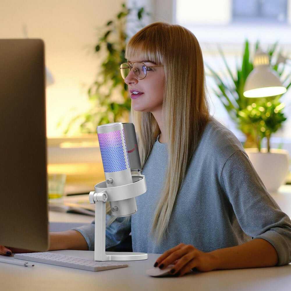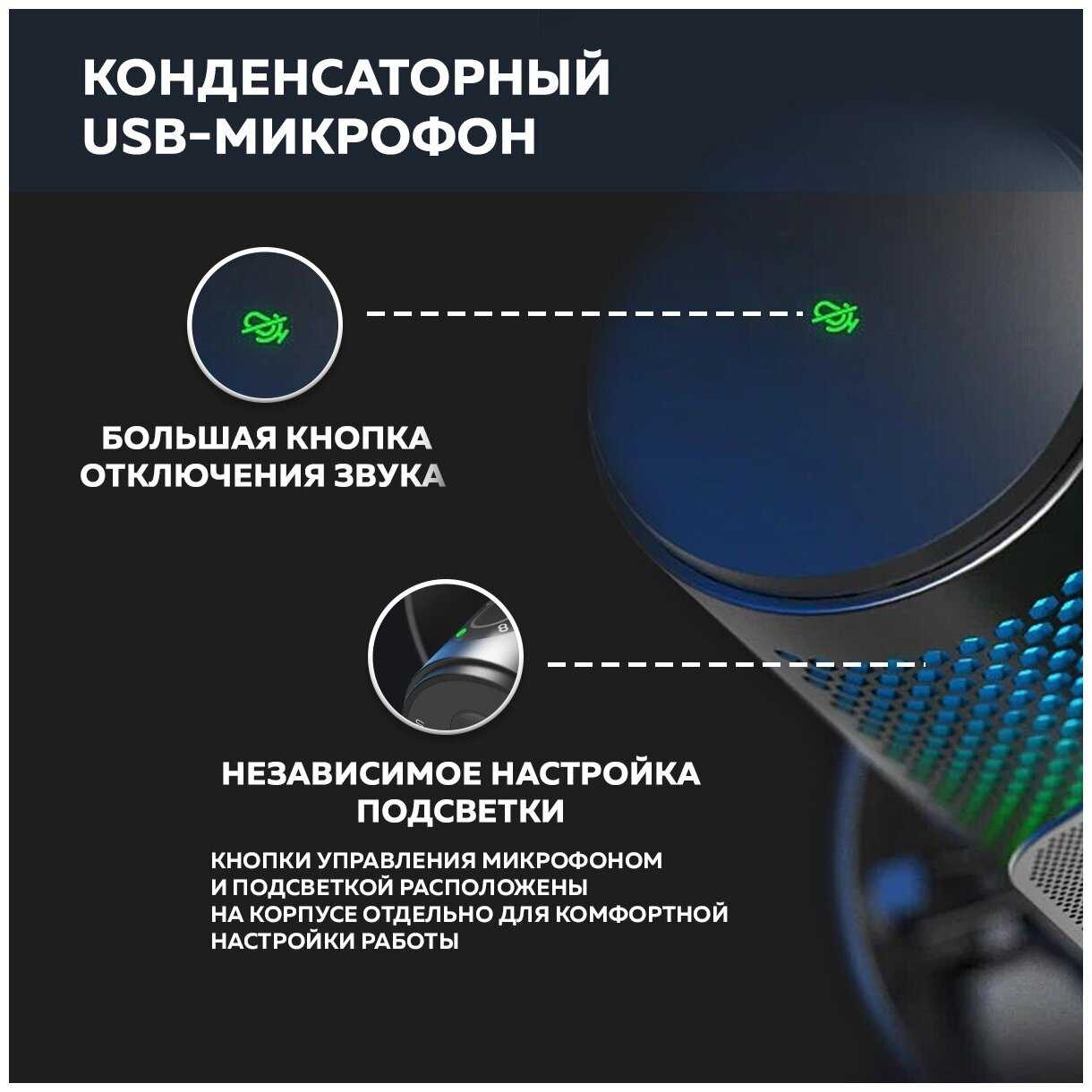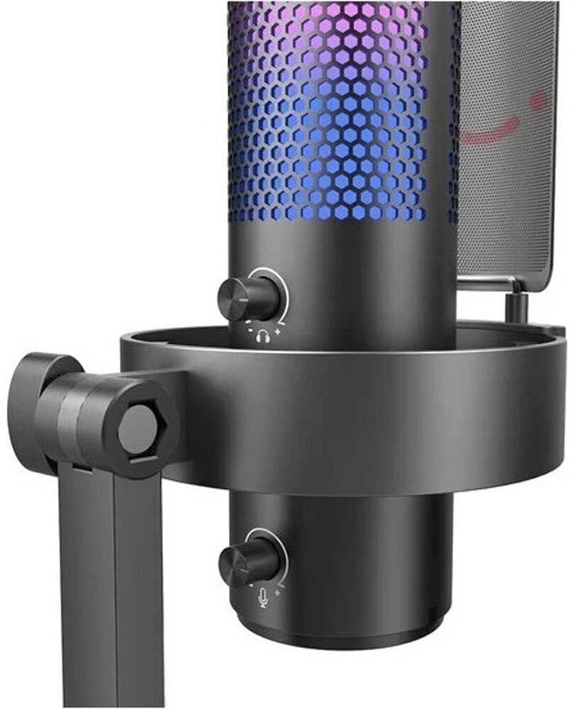 Да, RGB-подсветку можно настроить через сенсорные кнопки: выбрать статичный цвет, режим переливания или полное отключение. Длительное удержание пальца на кнопке деактивирует подсветку для пользователей, которых раздражает световое оформление. После перезагрузки микрофон возвращается к стандартным настройкам подсветки. -