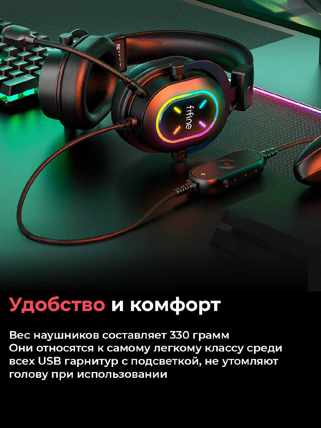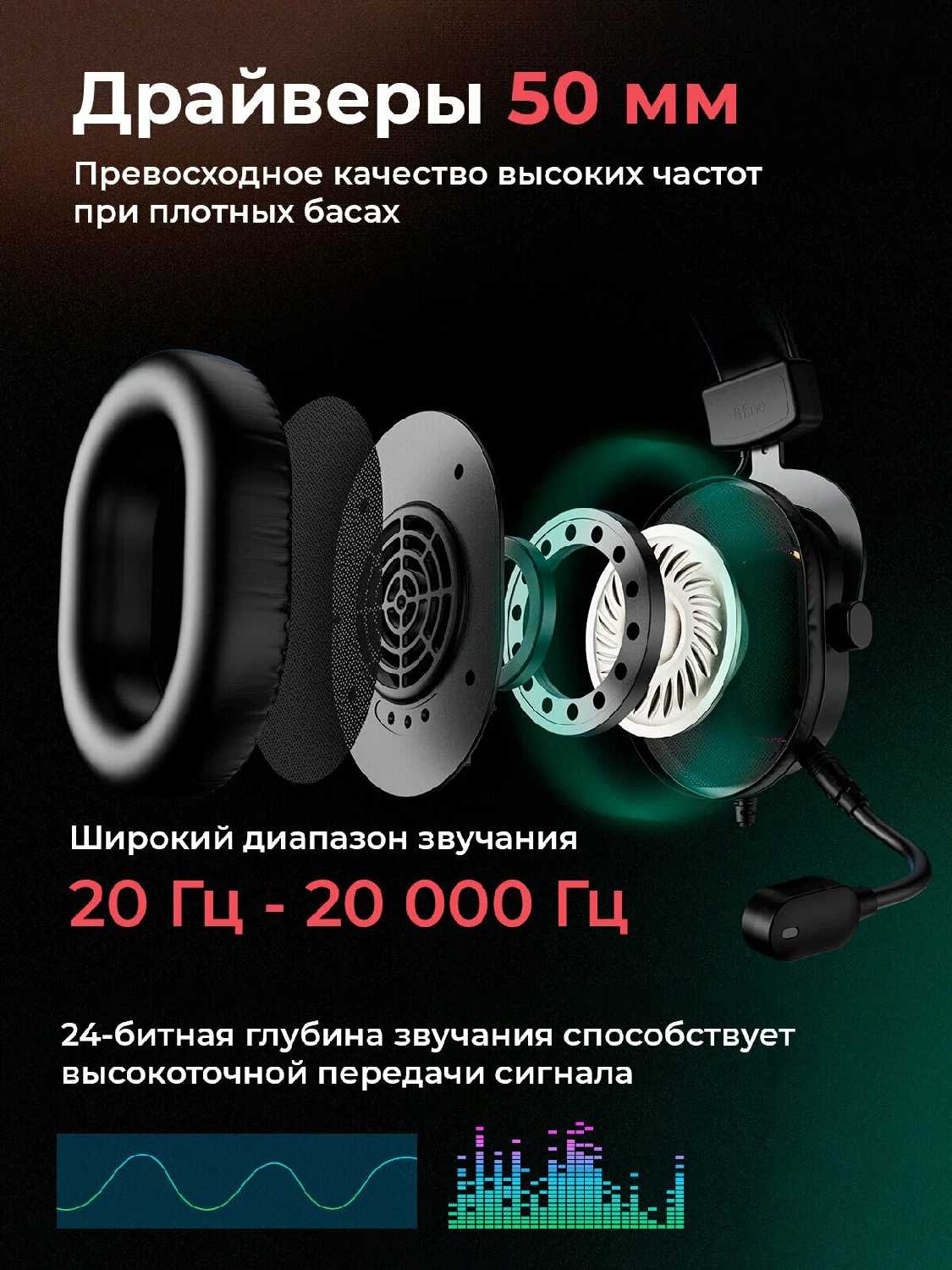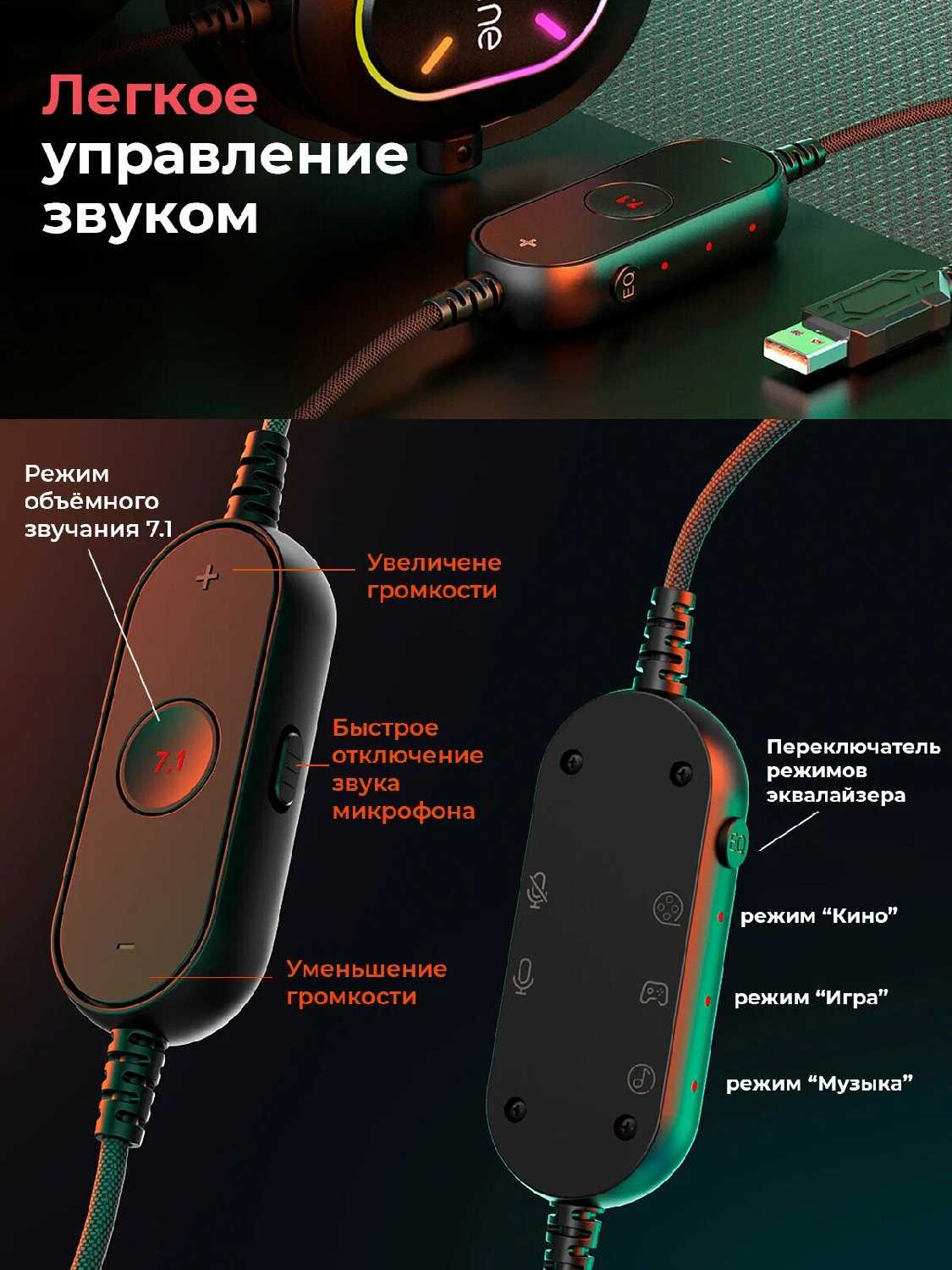 Особенности : | регулировка громкости, шумоподавление, мягкие амбушюры, сменные амбушюры, отключение микрофона, отсоединяемый кабель, RGB подсветка, неодимовые магниты, съемный микрофон |