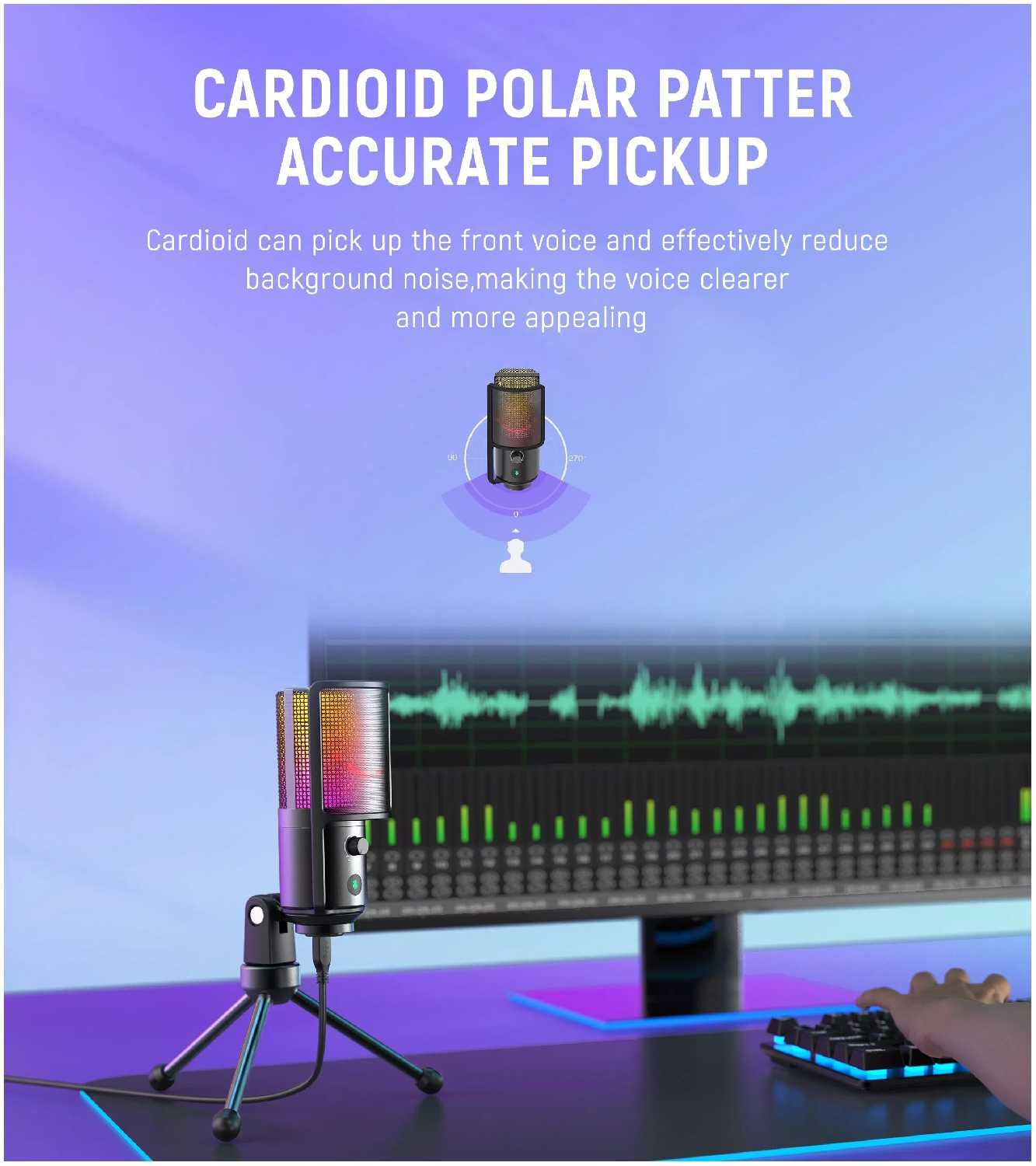 - + хороший звук за деньги. подсветка не плохая. имеется регулятора чувствительности звука. кнопки выкл/вкл микрофона и подсветки сенсорные