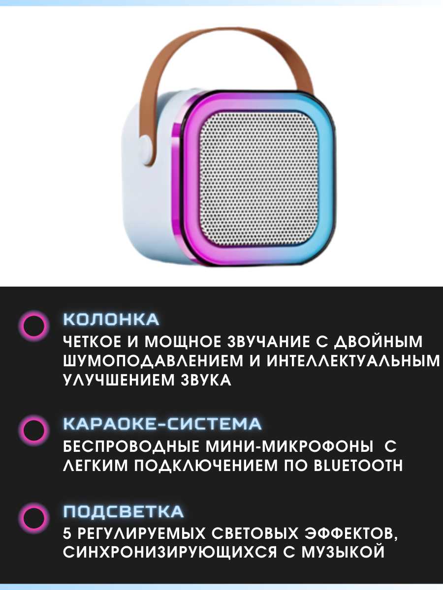 - + хороший звук. не плохой материал. есть басы даже) есть эхо. 4 изменения голоса. светомузыка.