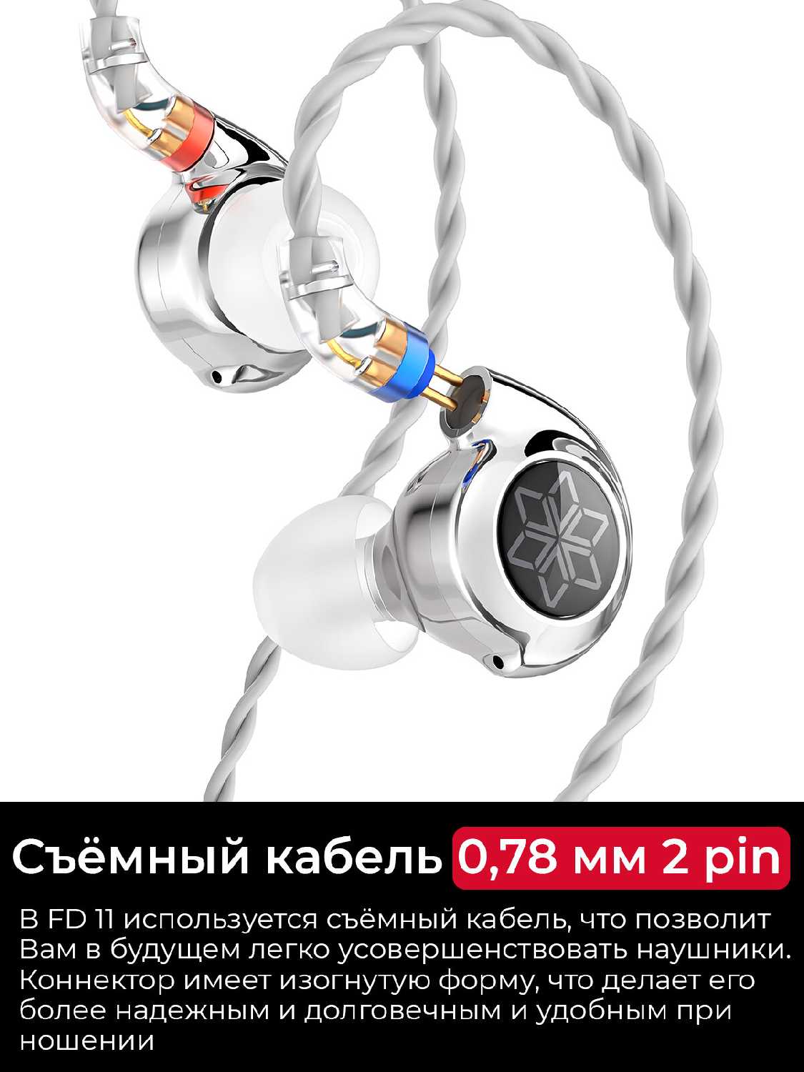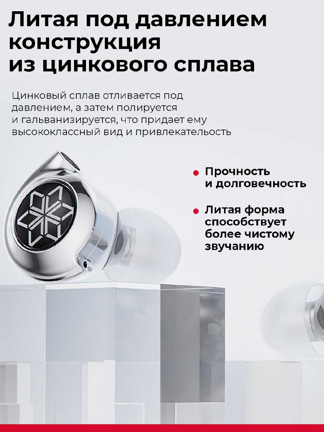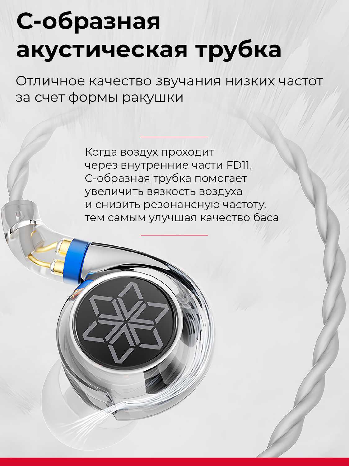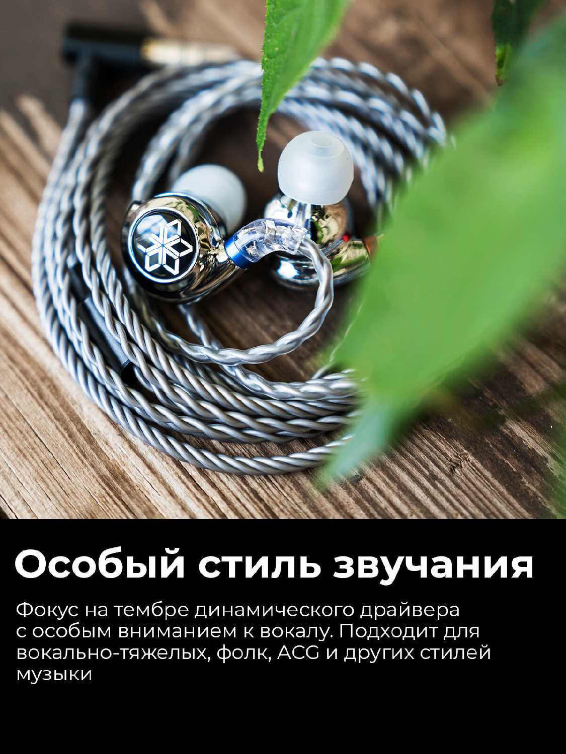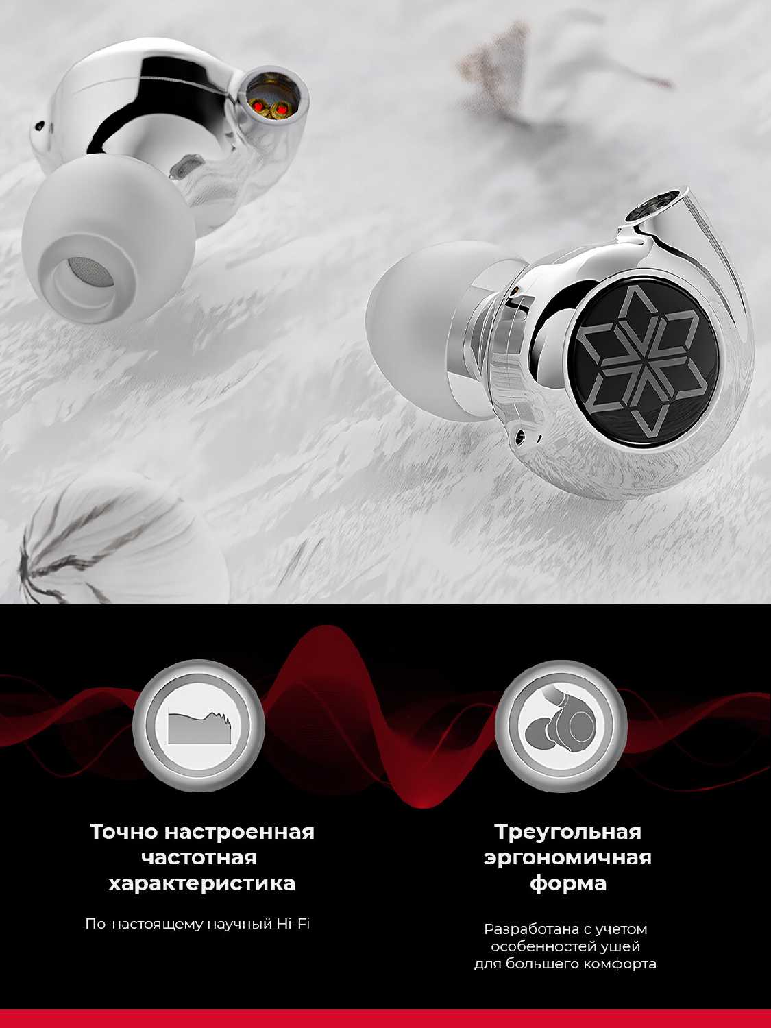 - Гибридная акустика (динамический + арматурный драйвер) исключает перекос в низкие частоты: бас "панчует", но не заглушает середину.