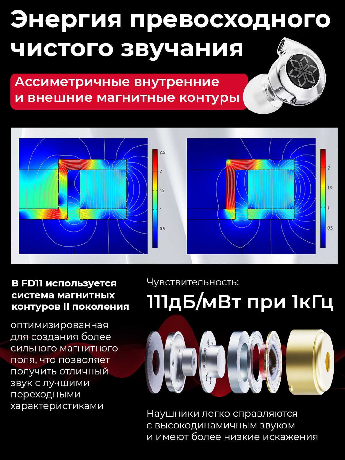 - Арматурный драйвер обеспечивает разделение инструментов в музыке без "каши", сохраняя детализацию высоких частот (вокал, студийные эффекты).