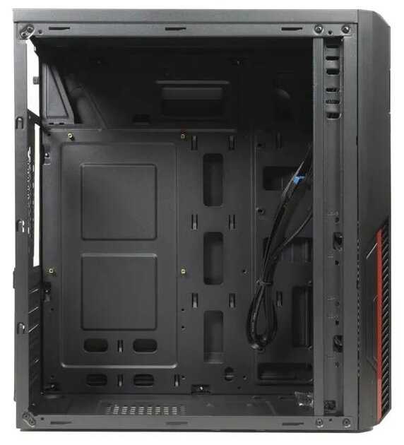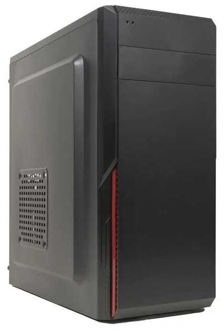- Лаконичный черный корпус с красными акцентами на передней панели подходит для офисных и домашних ПК.
