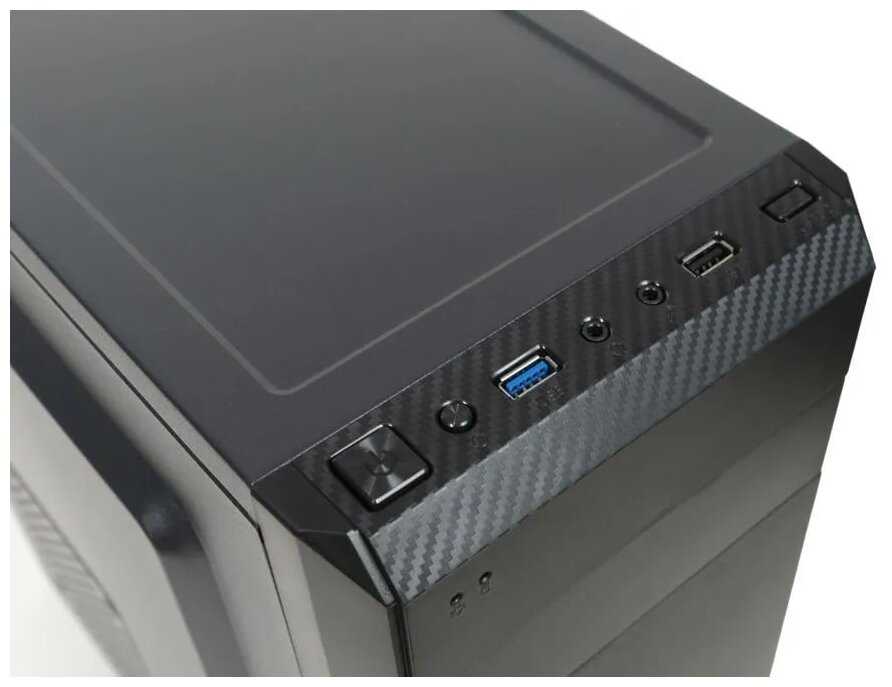 - Все разъемы USB 3.0, аудиовыходы и кнопки питания/перезагрузки вынесены на верхнюю грань, что упрощает доступ при размещении системного блока под столом.