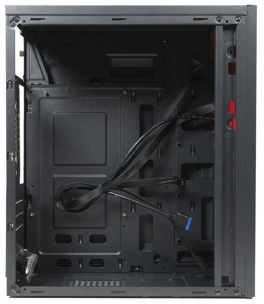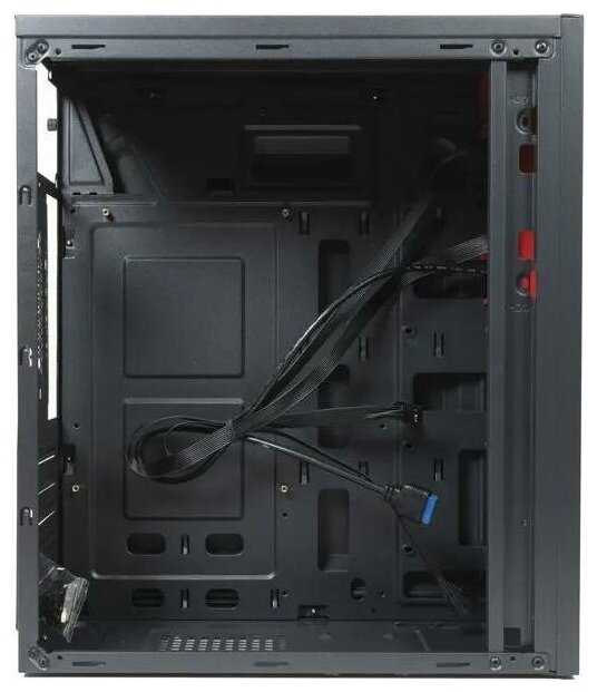 - + Изначально корпус понравился просто визуально - такая строгая черная коробка с декоративной красной отделкой портов и кнопок передней панели. Порадовало присутствие usb 3.0 на фронтальной панели. Внутри много места для всех комплектующих.