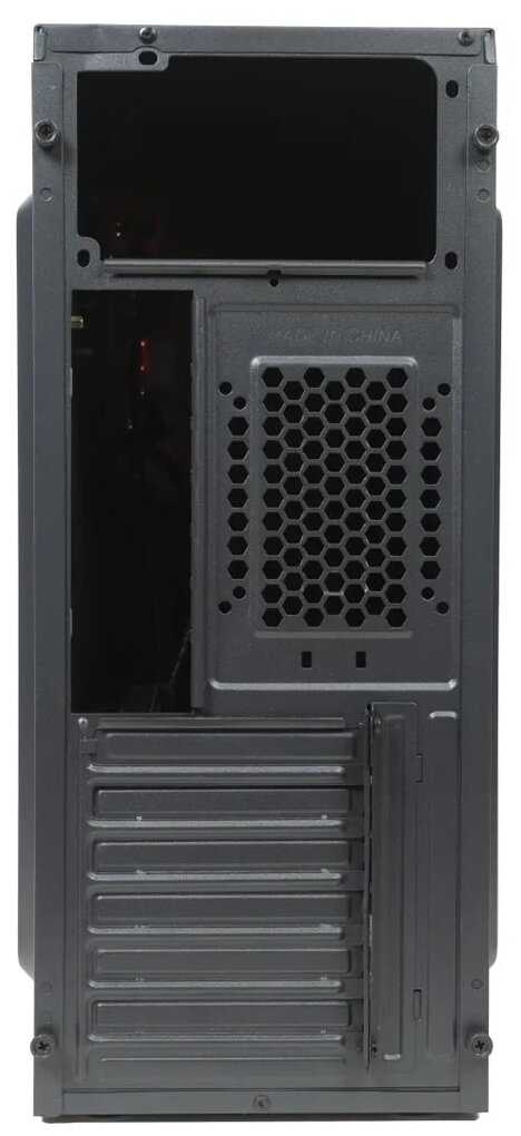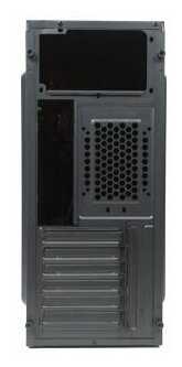 - Единственный штатный выдув — 90-мм кулер на задней стенке, недостаточный для игровых систем.