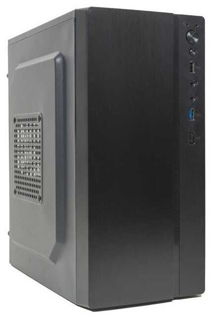 - + Компактный корпус для сборки начального уровня. Аналог Ginzzu B200, только без логотипа и с двумя USB портами вместо трёх. Занимает мало места, вполне прилично выглядит. Есть куда спрятать лишние провода от БП.