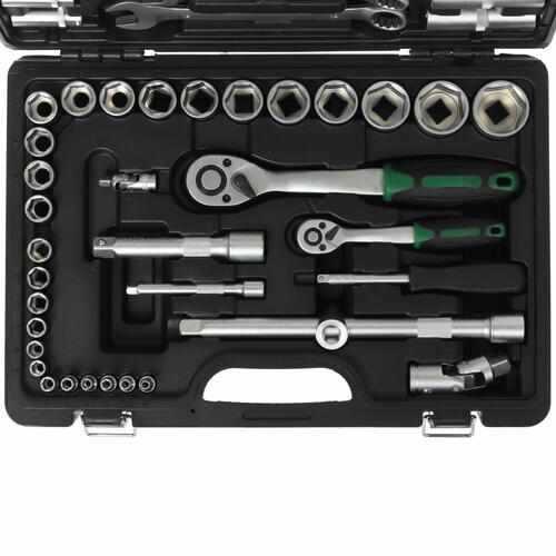 Пользуюсь данным набором около трёх месяцев, работы в принципе хватает так как имеется и легковой и грузовой транспорт, в принципе набор хороший, головки крепкие, из минусов слабая трещетка(маленькая)у которой расыпался механизм.