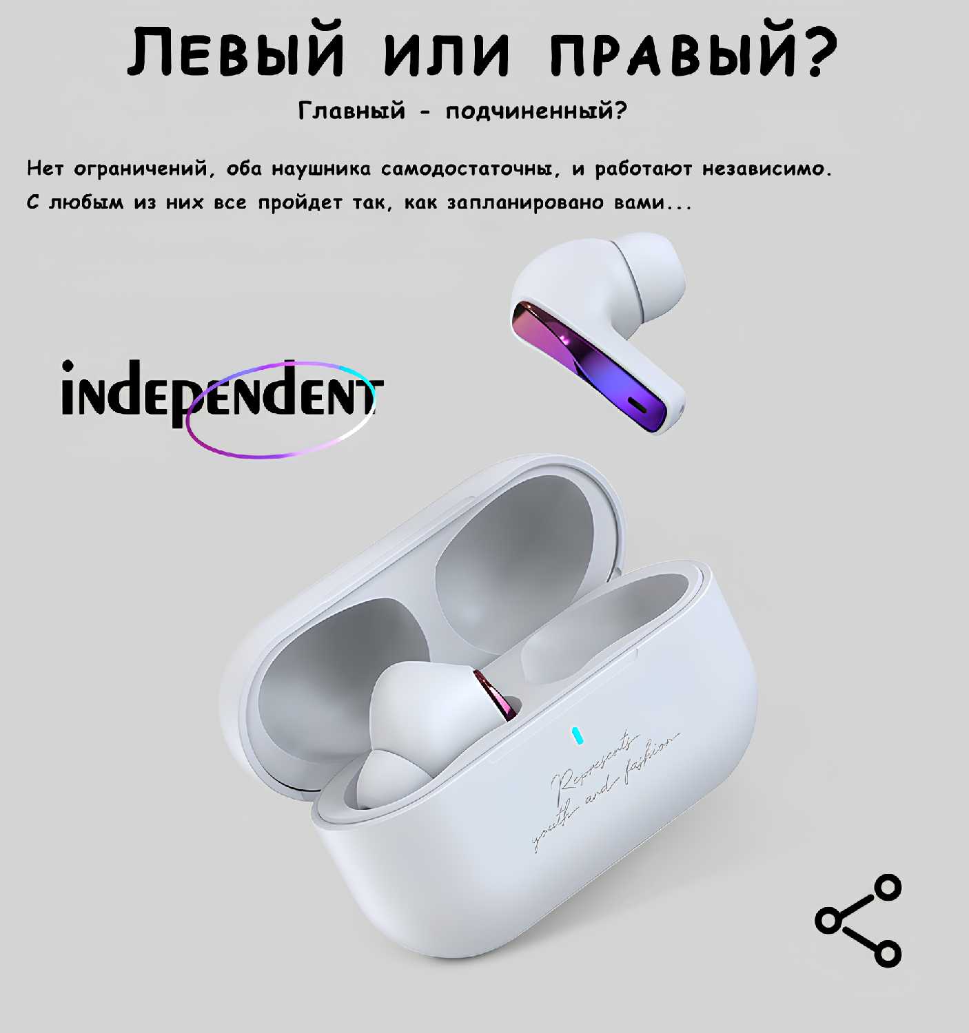 - Правый наушник держит 5-6 часов, кейс обеспечивает быструю подзарядку для всего дня использования.