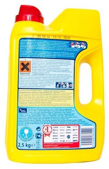 | Подробная комплектация : | FINISH Lemon (порошок для п/м машин Лимон, 2500гр) - 1 шт |