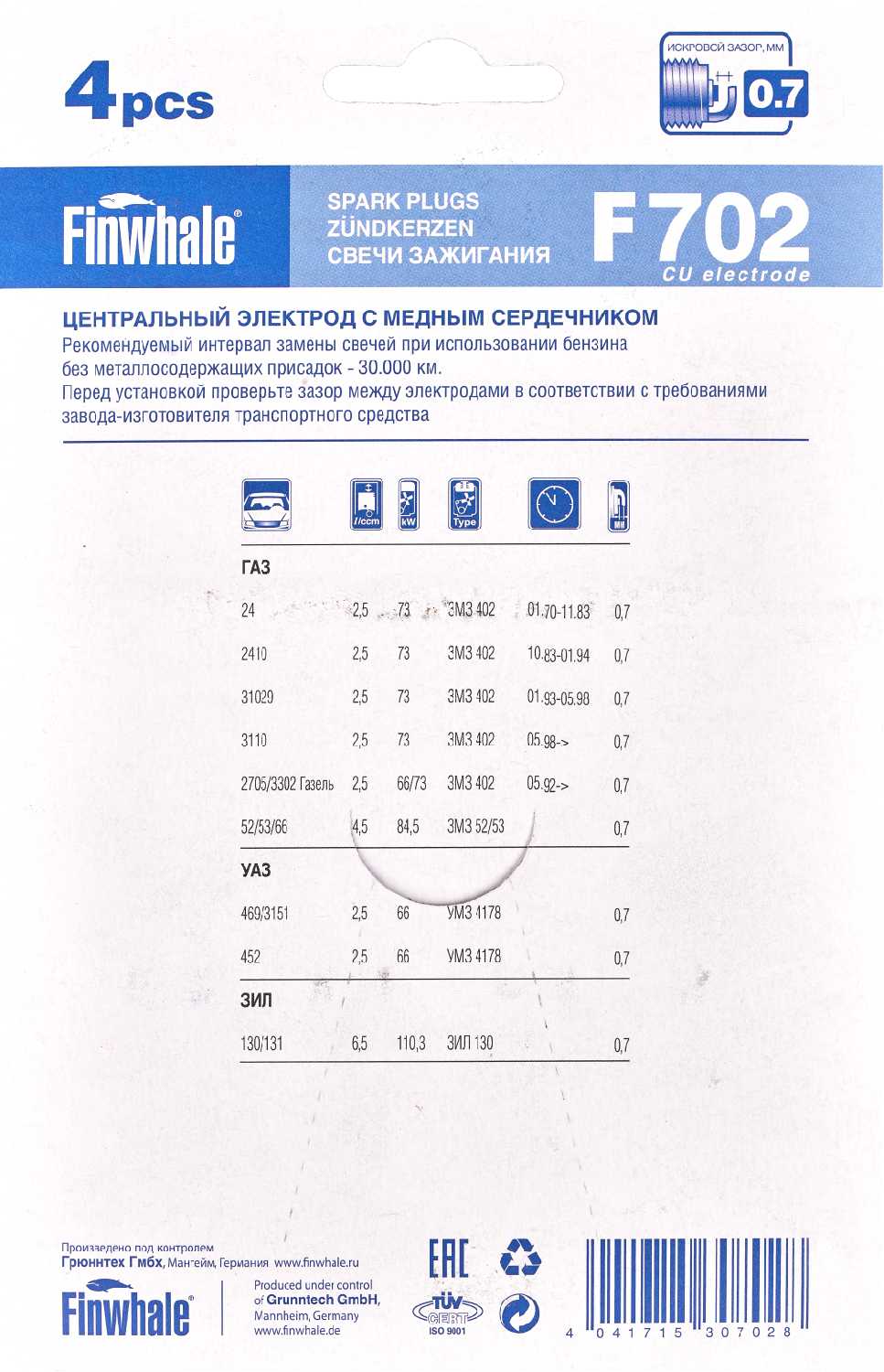 11 отзывов пользователей o Finwhale Свеча зажигания (F702)