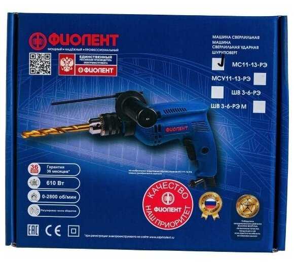 Дополнительная информация : | Дрель Фиолент МС11-13-РЭ, 610 Вт |