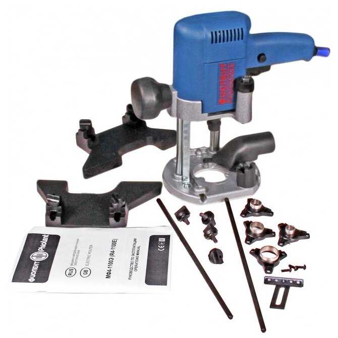 3 копировальные втулки ,паралельный упор в комплекте - - Все те же .Куча характерных минусов присущих инструменту этого бренда в целом .И фрезерам в частности
