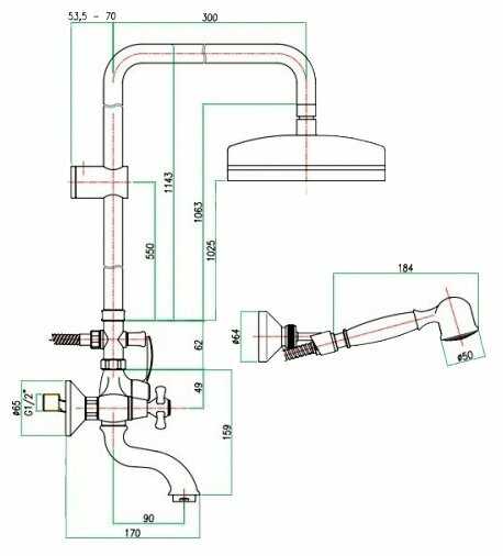 | Дополнительная информация : | высота стойки для душа: 1200 мм, диаметр душевой лейки: 50 мм |