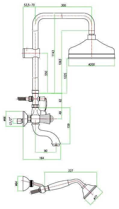 | Дополнительная информация : | высота стойки для душа: 1254 мм, диаметр душевой лейки: 77 мм, диаметр верхнего душа: 200 мм |