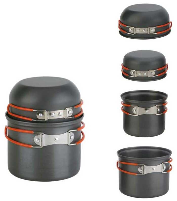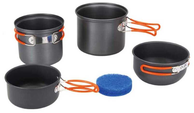 | Состав набора : | вилка, кастрюля, ковш, контейнер, котелок, кружка, крышка, ложка, лопатка, миска, сковорода, чехол |