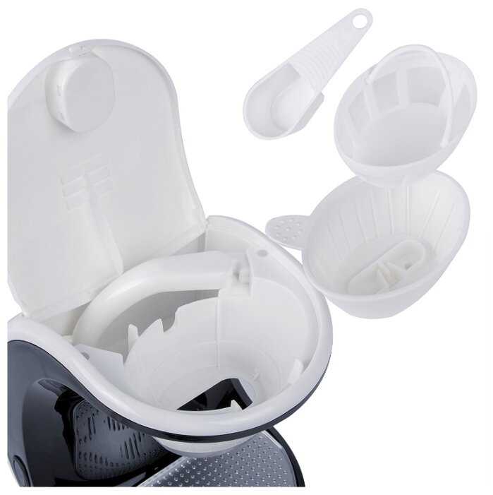 - - После вскрытия внутри самой кофеварки, были какие то черные крошки, мусор. Очень хлипкая конструкция. Местами есть заусенцы на пластике. Не отключается самостоятельно после того как закончиться вода. Неудобно мыть, сливать воду.