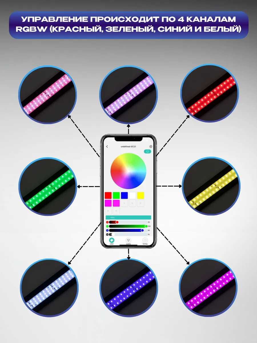 Особенности : | возможность вращения, два спектра, для роста растений, для усиления окраса рыб, для цихлид, естественный свет, ночная подсветка, разноцветный, с регулировкой интенсивности |