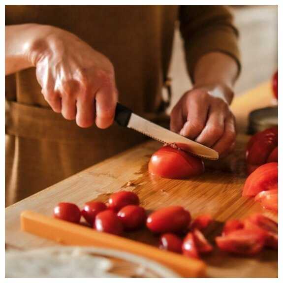 - + Отличный нож. Кроме томатов режем хлебобулочные изделия.