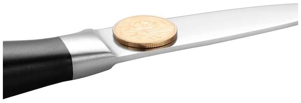 Было куплено 4 разных ножа этой фирмы, из коробки острые, но спустя пару недель пользования 2 из них чуть затупились- нужно будет довести. к внешнему виду (качеству) нареканий нет