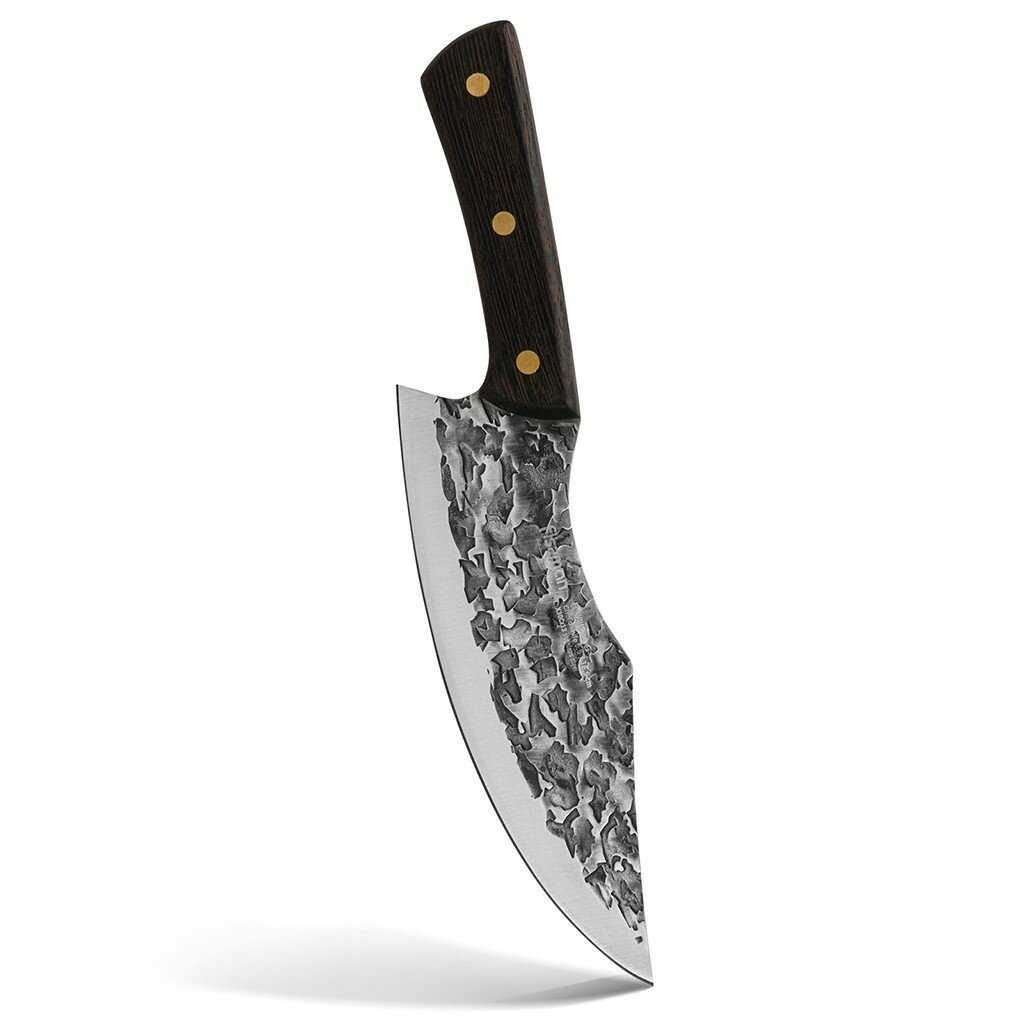 хороший нож топорик по мясу стал любимцем справляется на 5 с+ остроту держит ,удобно лежит в руке за свои деньги топ