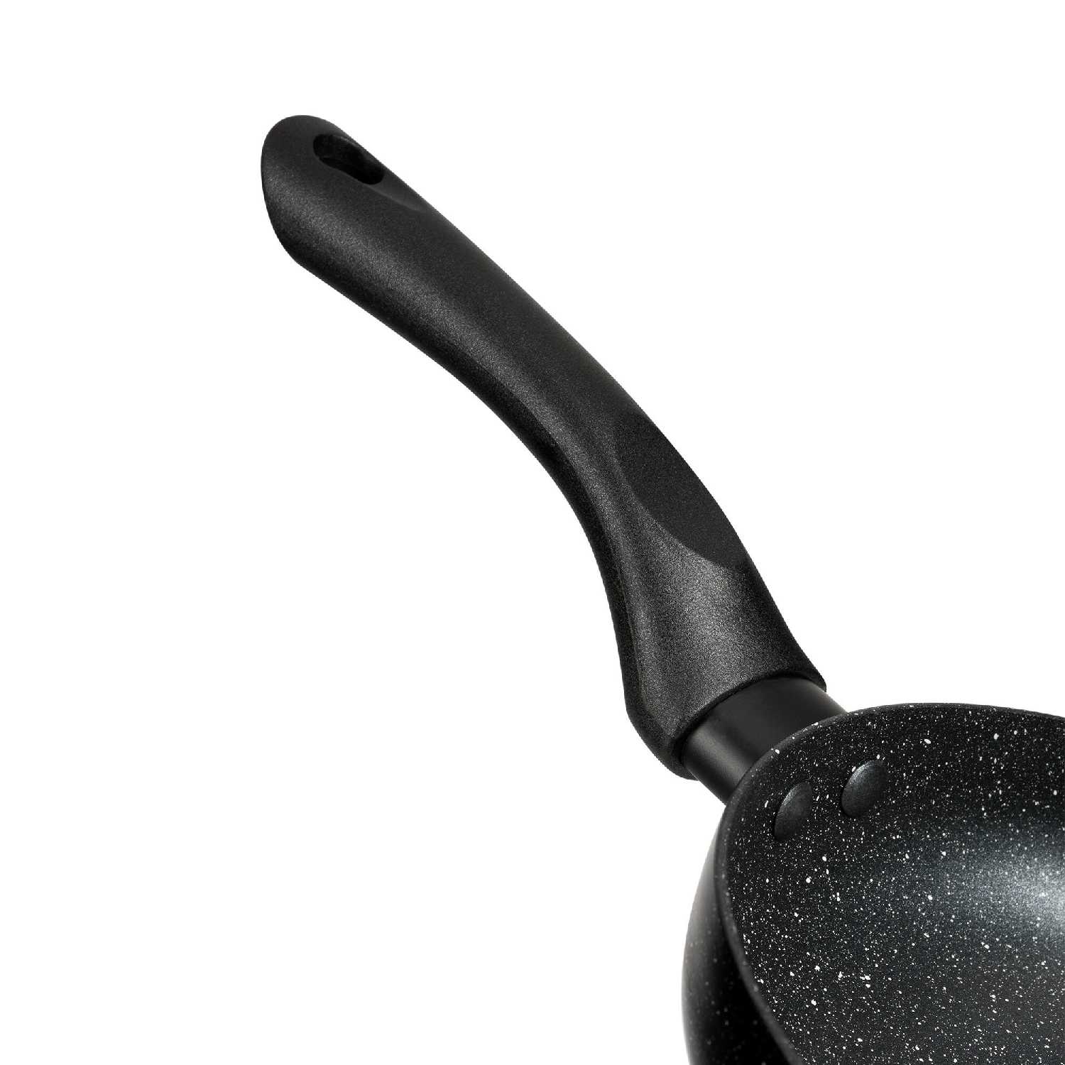 - Сбалансированный вес предотвращает перевешивание сковороды при перемешивании.