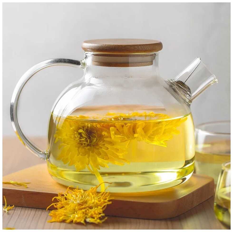 - + стекло тонкое, изящное, жаропрочное. крышка бамбуковая с резиновой манжетой и металлическим дном - так что не деформируется. ситечко не пропускает даже мелколистовой чай.