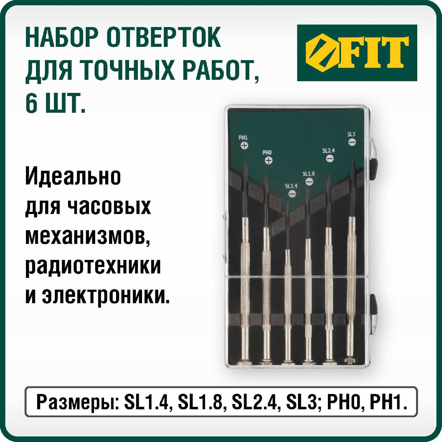 | Биты подробно : | Отвертки часовые, отвертки для точных работ FIT 6 шт. |