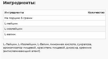Основной ингредиент : | валин, изолейцин, лейцин |