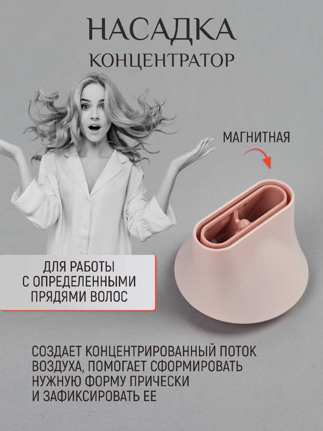 В базовую комплектацию всегда входят диффузор для кудрявых волос и насадка-расчёска, но некоторые пользователи не получили заявленные зажимы для волос. Насадки фиксируются магнитами или защёлками, обеспечивая стабильное крепление без люфтов. Важно уточнять у продавца полный перечень комплектующих перед покупкой. -