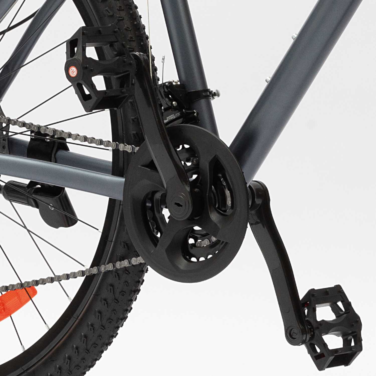 Фактическое количество рабочих скоростей — 18 вместо заявленных 21. Ограничитель заднего переключателя блокирует 7-ю передачу на кассете, что подтверждено тестами пользователей. Однако после настройки доступные передачи плавно переключаются под нагрузкой, а цепь не слетает при корректной эксплуатации. -