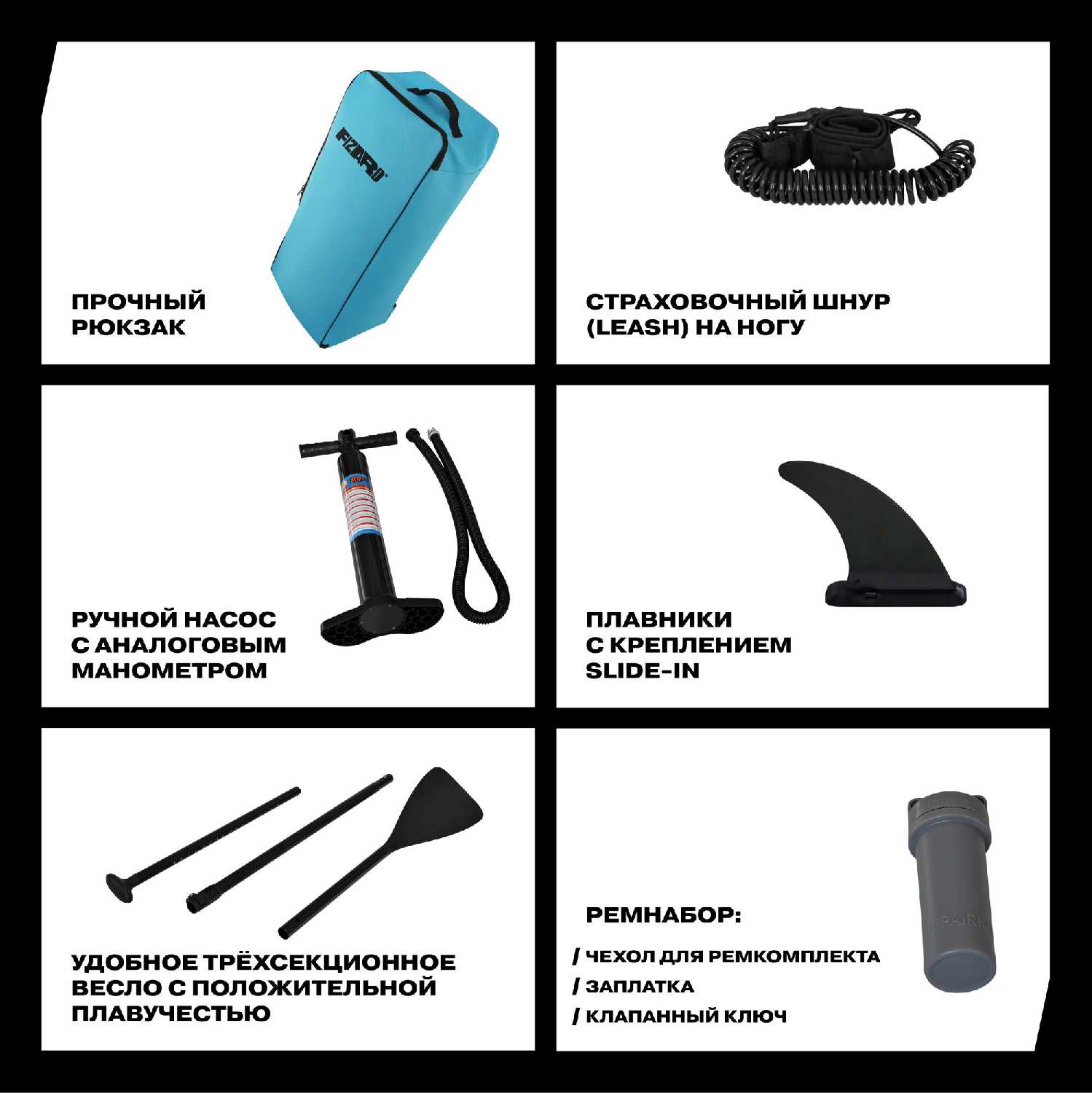 Купил полный комплект FIZARD, проверил всё: насос бодро качает, манометр чётко показывает давление, клапан держит отлично, весло легко настраивается!
